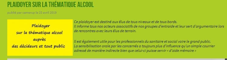 PLAIDOYER SUR LA THEMATIQUE ALCOOL AUPRES DES DECIDEURS ET TOUT PUBLIC